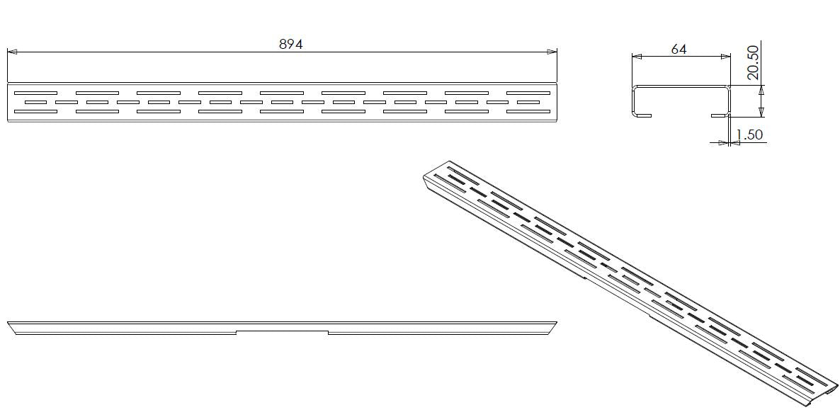 Afzonderlijk standaardrooster Wiesbaden voor 3e generatie doucheafvoer 90 cm in matzwart