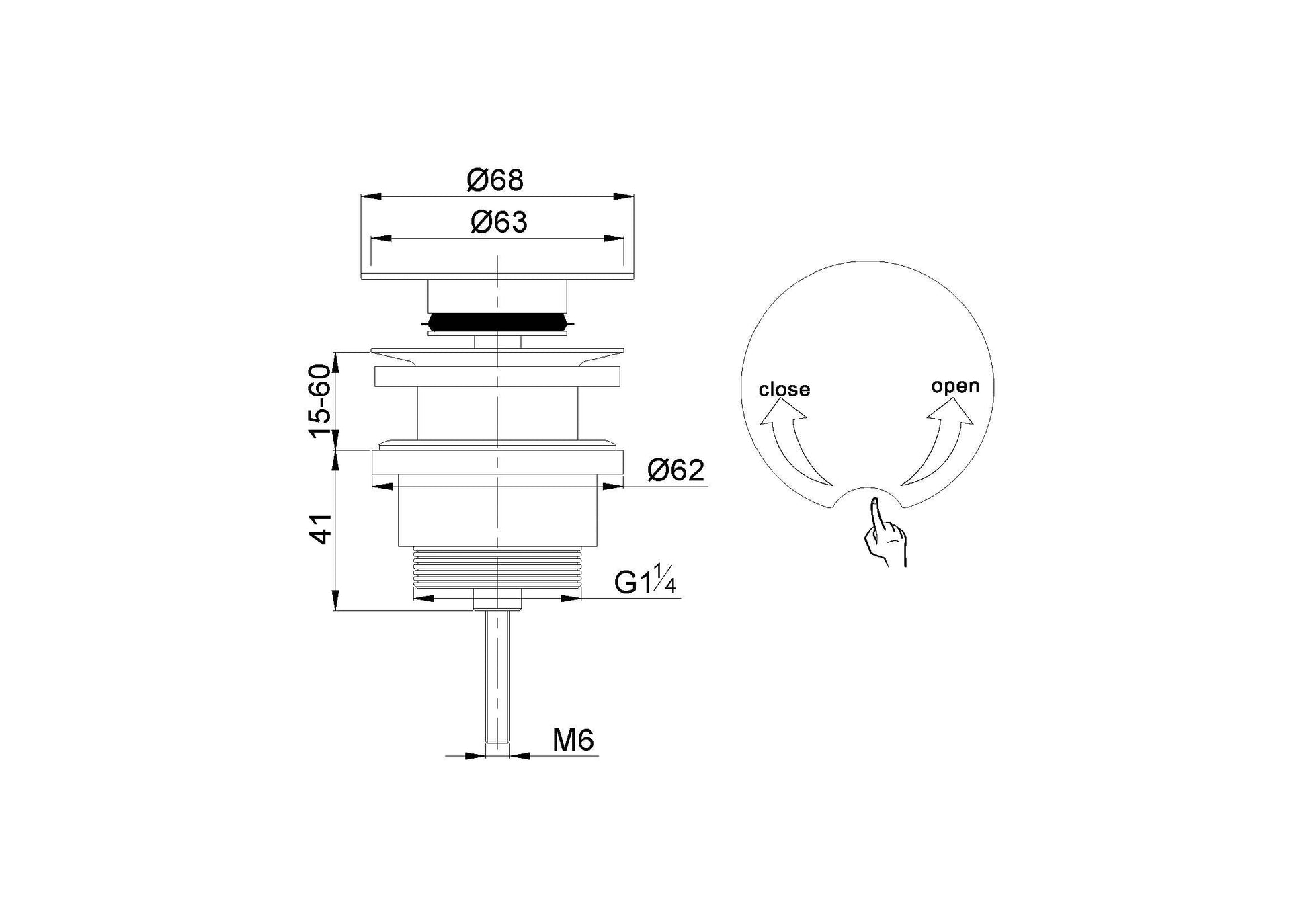 Met deze klikwaste kiest u voor een apparaat dat zowel eenvoudig in elkaar te zetten als eenvoudig te bedienen is. Deze klikwaste kan worden geopend en gesloten door de afdekkap te draaien, wat door de zwarte kleur ook de esthetische uitstraling versterkt. Dit artikel is zeer geschikt voor wastafels voorzien van een overloop.