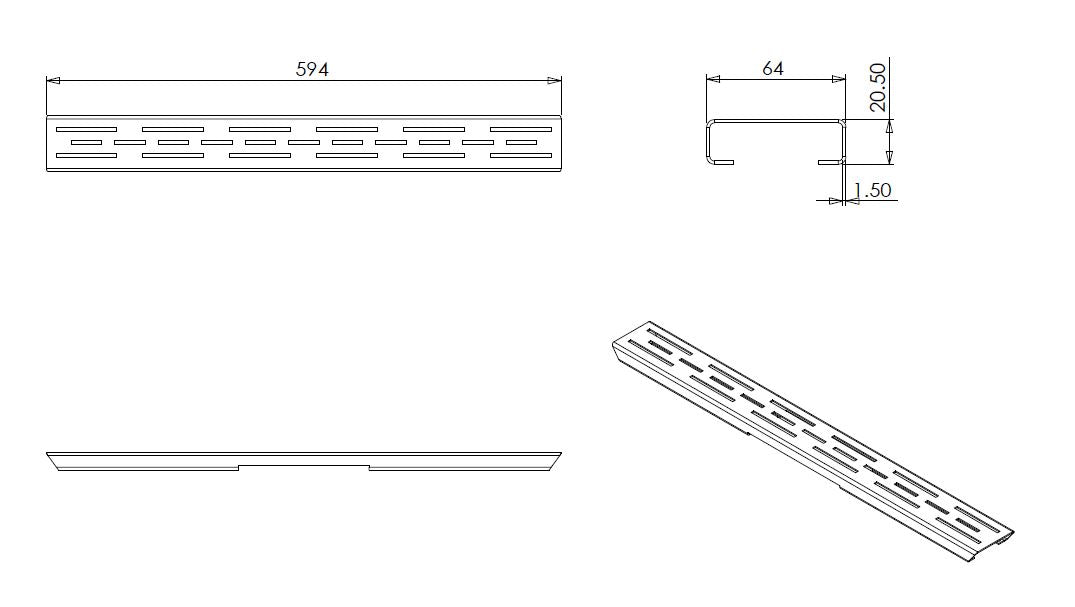 Standaardrooster voor 3e generatie doucheafvoer Wiesbaden 60 cm matzwart