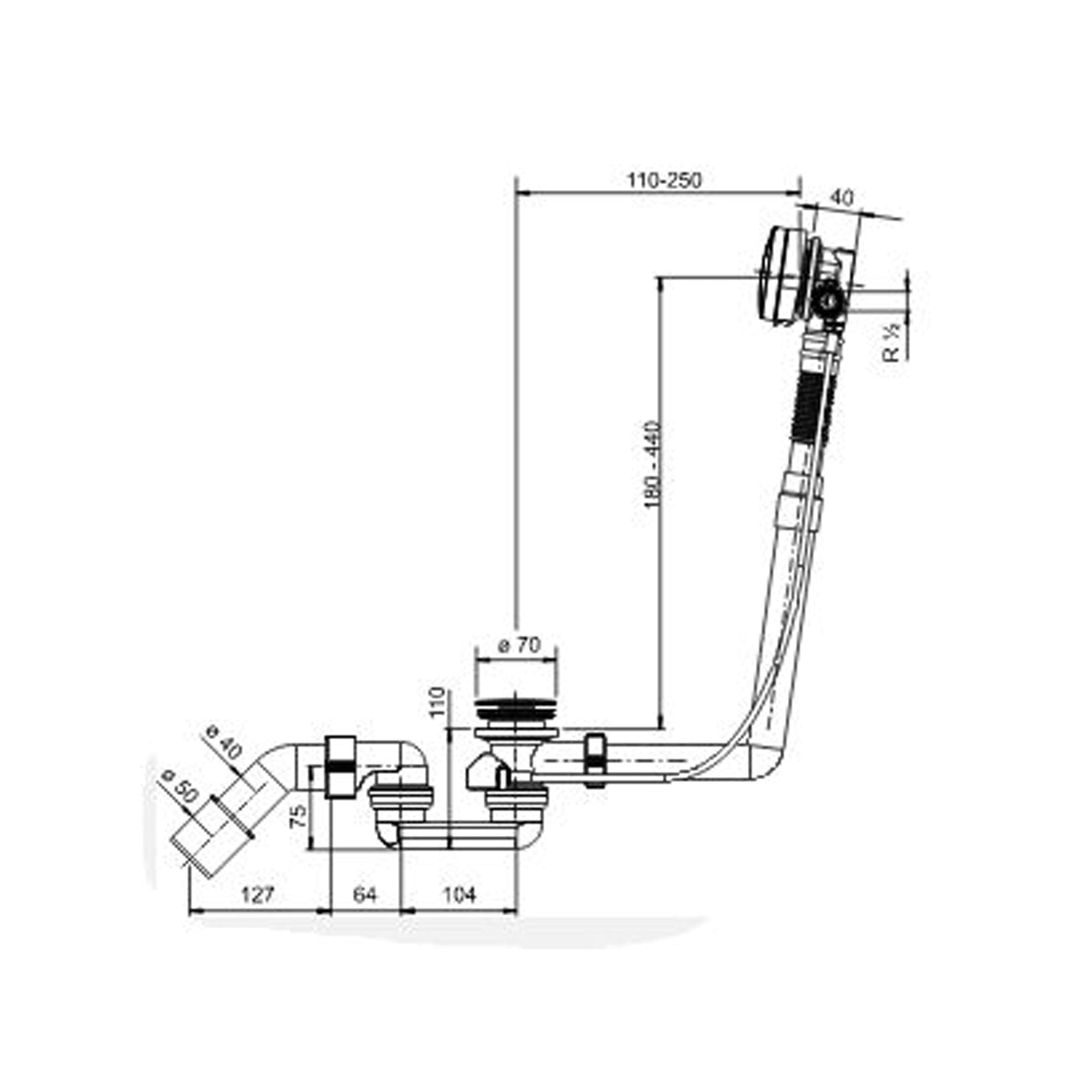 Badafvoer en overloopcombinatie met vulfunctie en pop-up waste chroom