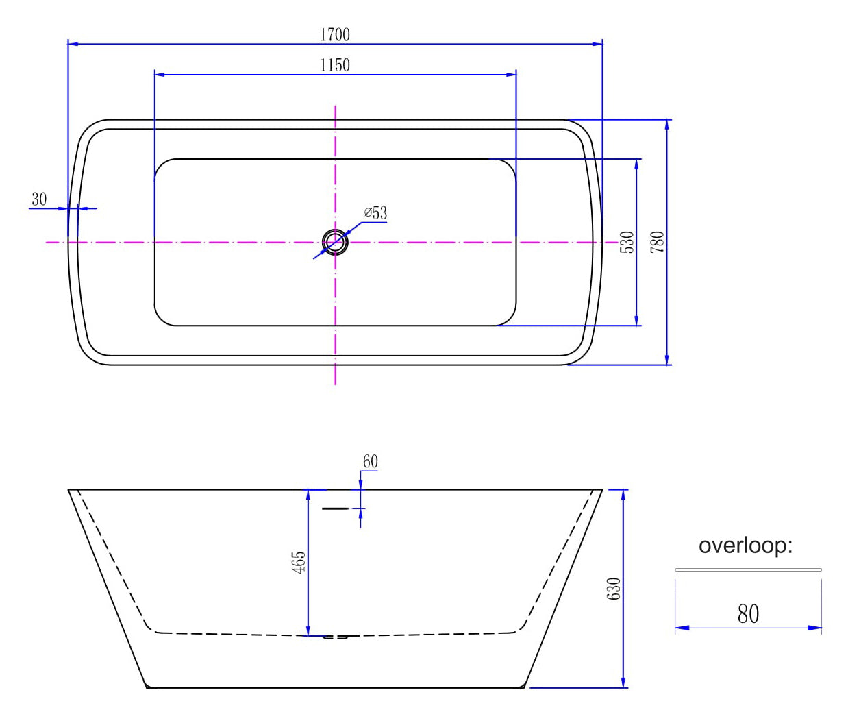 Wiesbaden Larx Vrijstaand Vierkant Acrylbad met Afvoer 170x78 cm Wit