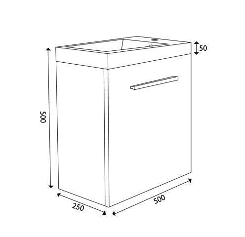 • - Afmetingen: 50 cm x 25 cm x 50 cm - Materiaal wastafel: synthetisch marmer