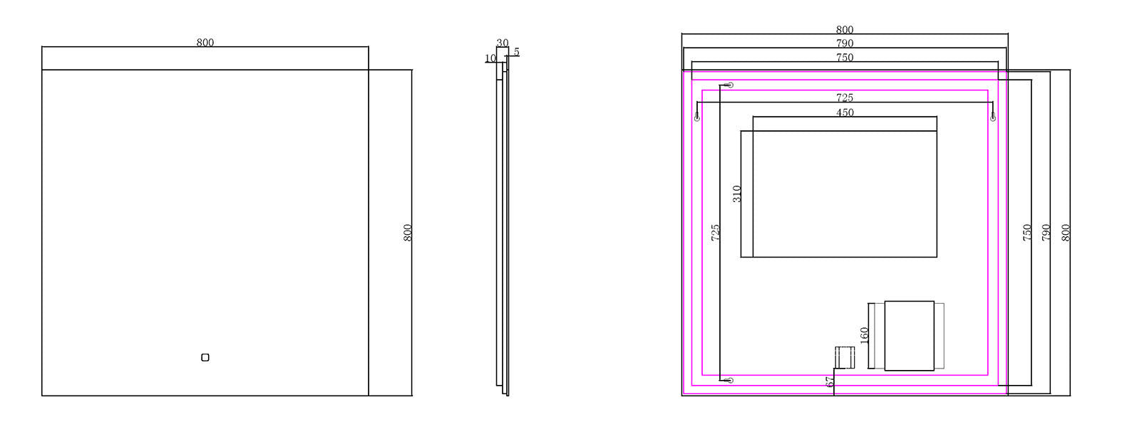 Specificaties Spiegel Wiesbaden Soul Vierkant met LED Verlichting Backlight 80 cm