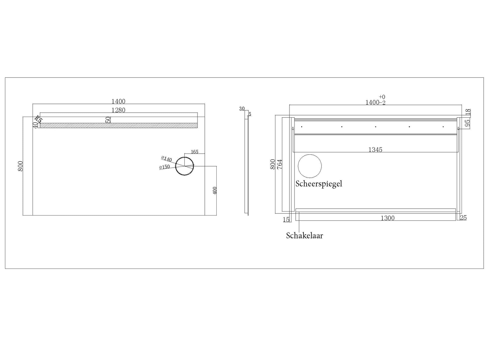 Tigris Spiegel Wiesbaden met LED Verlichting en Scheerspiegel 140x80 cm