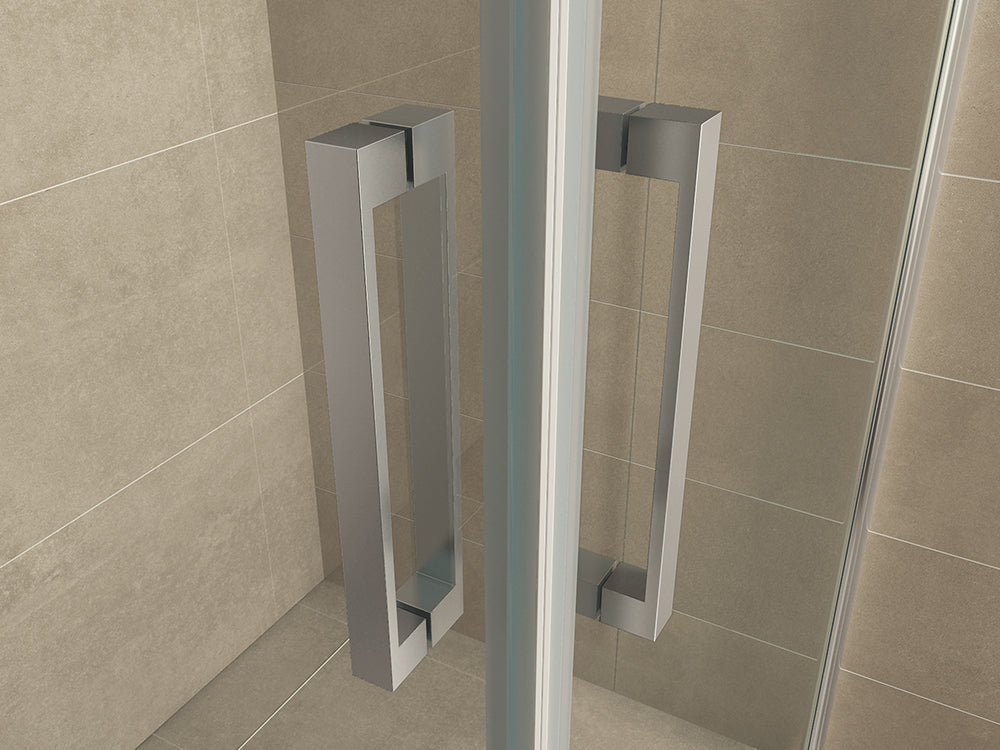 De Nano douchecabine, met een afmeting van 90x90cm en voorzien van een dubbele draaideur, is de optimale en eigentijdse douchewand voor uw badkamer, geschikt voor montage direct op de tegelvloer of op een douchebak. De douchecabine heeft geen vloerbevestiging onder het vaste gedeelte, waardoor een snelle transparante afdichting na installatie mogelijk is. De douchecabinedeuren kunnen zowel naar binnen als naar buiten geopend worden.