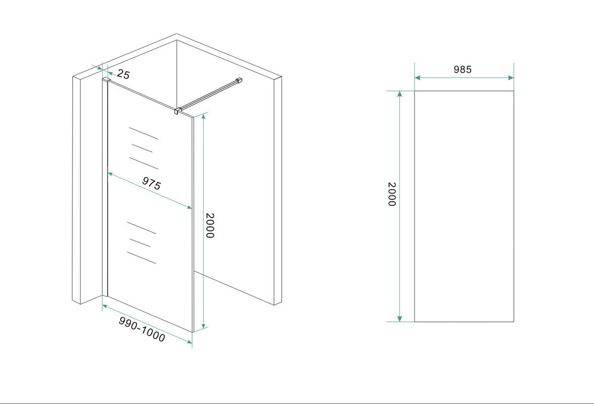Wiesbaden Slanke Spiegel Rook naar Helder Glas Nano 1000x2000 mm, 8mm
