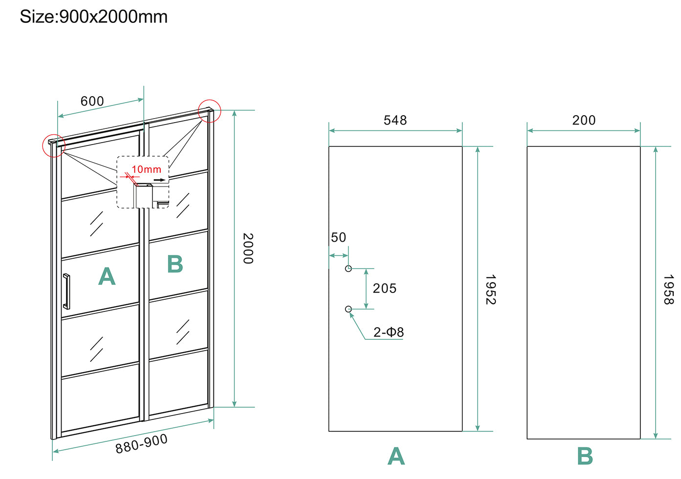 Horizon Nisdeur Wiesbaden met vast paneel 90x200 cm 8 mm Nano Mat Zwart