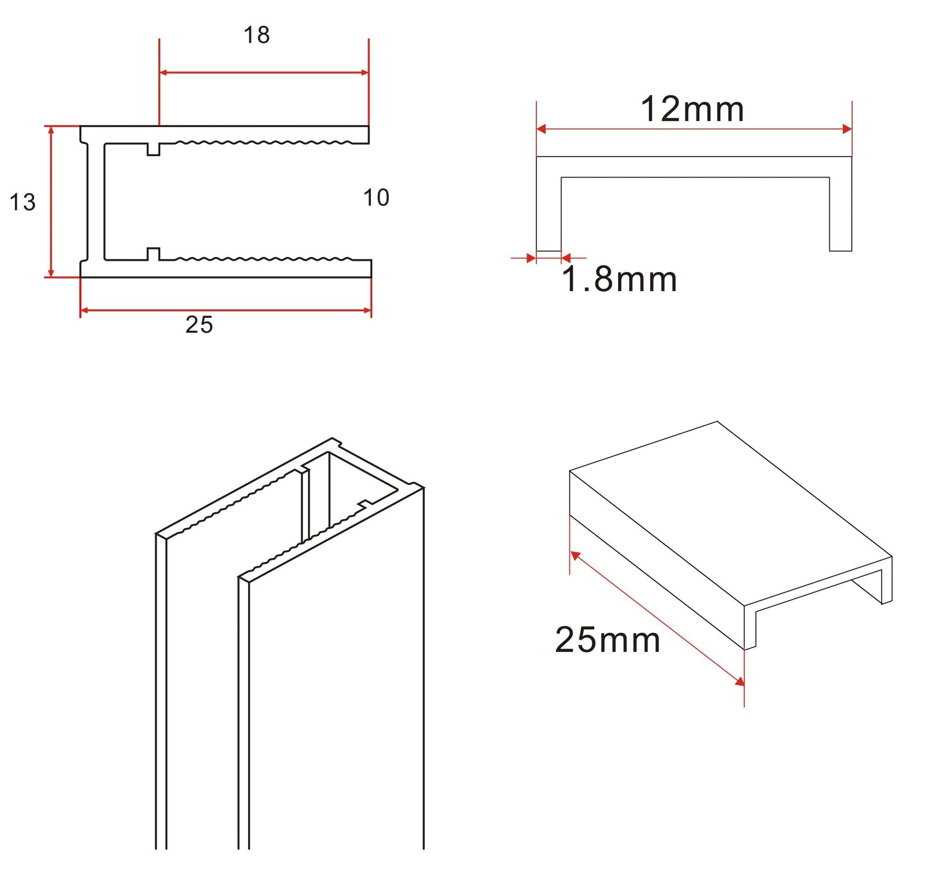 Slanke 120 cm mat witte profielset met stabilisatiestang Wiesbaden