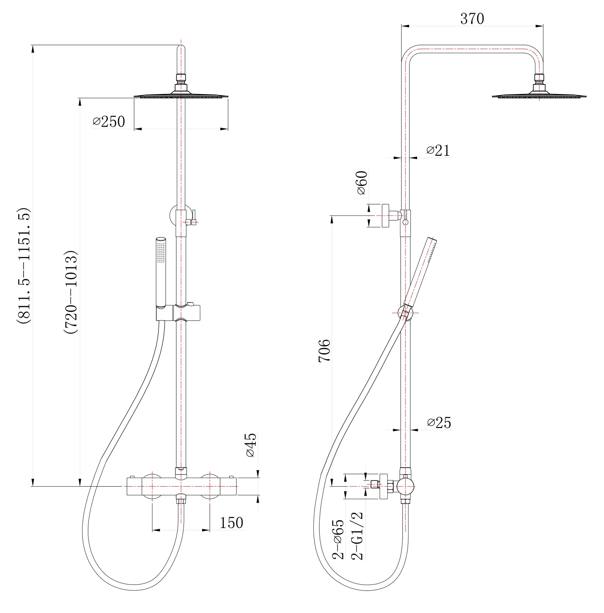 Opbouw Douchekraan Wiesbaden met Thermostatische Kraan en RVS Hoofddouche