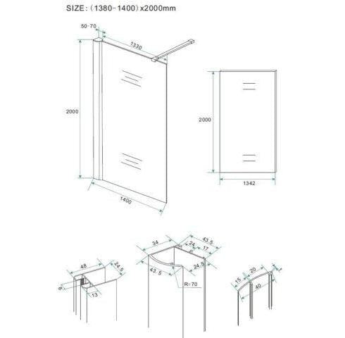 Actie Wiesbaden Douchewand Nano Coating Helder 140x200 Inloopdouche