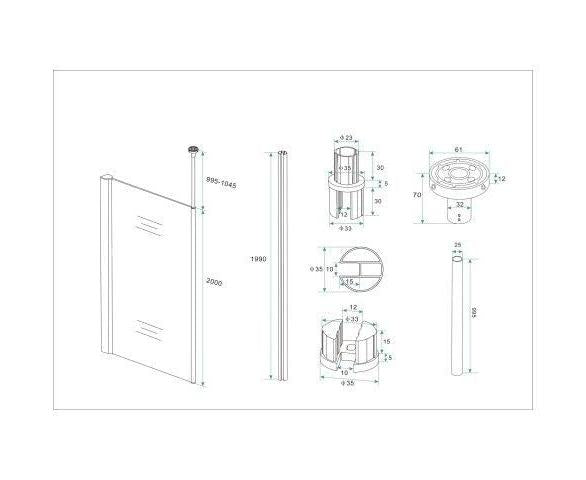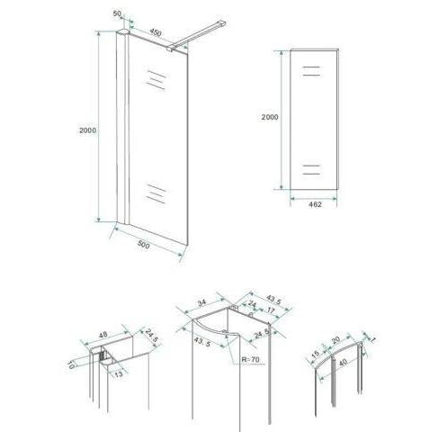 Douchewand met verticale stabilisatorstang Wiesbaden 50x200 cm 10 mm nano-coating