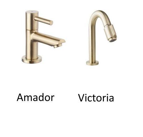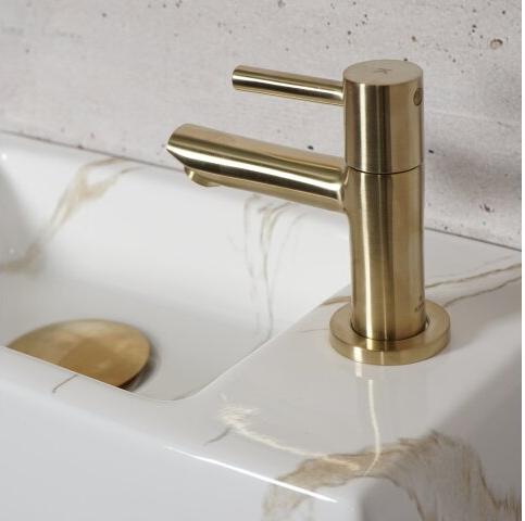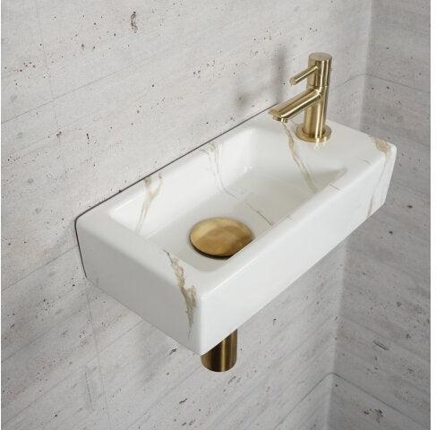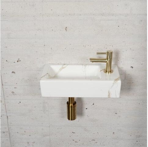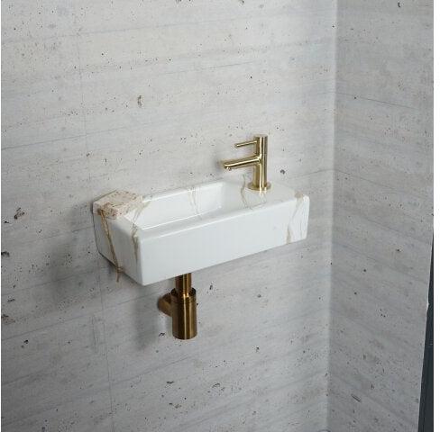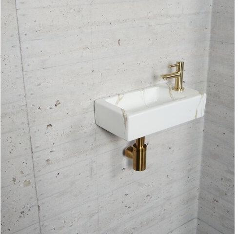 Carrara Marmer Look Fonteinset Wiesbaden Kleur Messing Goud (Kraangat Rechts)
