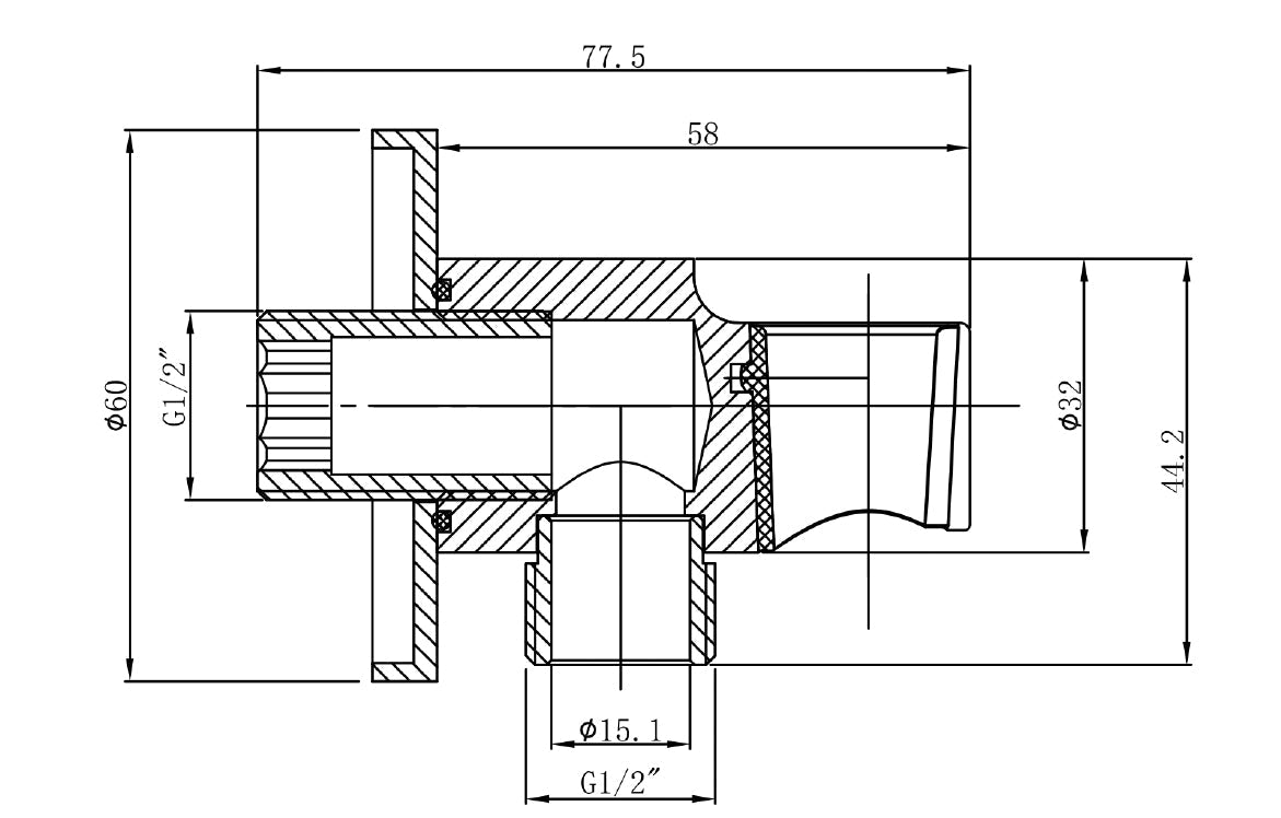 Nala Wandaansluiting Bocht Wiesbaden met Handdouchehouder Rond 1/2" in Geborsteld Messing