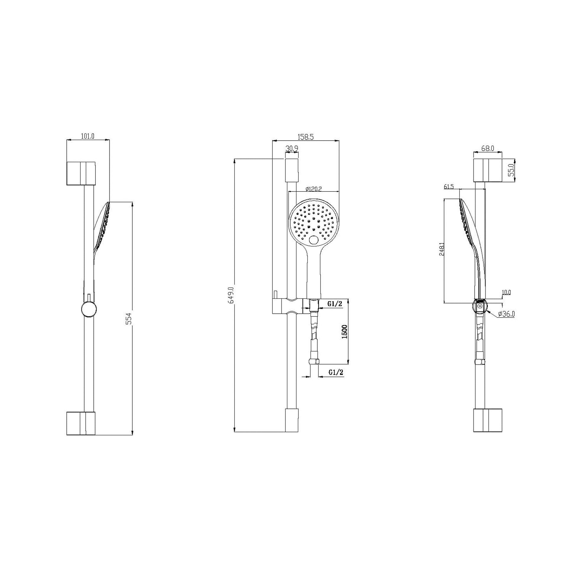 De Rain schuifstangset van Wiesbaden is een functionele en elegante aanvulling voor uw doucheruimte. De schuifstangset is gemaakt van messing en heeft een matzwarte afwerking. Het ensemble bestaat uit een douchestang, een handdouchehouder, een handdouche en een flexibele doucheslang. De staaf is 64,9 cm lang en de diameter van de douchekop van de handdouche is 12 cm. De flexibele doucheslang heeft een lengte van 150 cm.