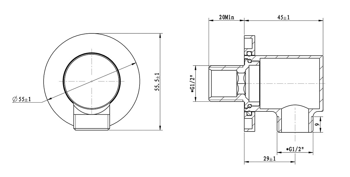 Ronde Wandverbindingsbocht Wiesbaden 1/2" in geborsteld bronskoper