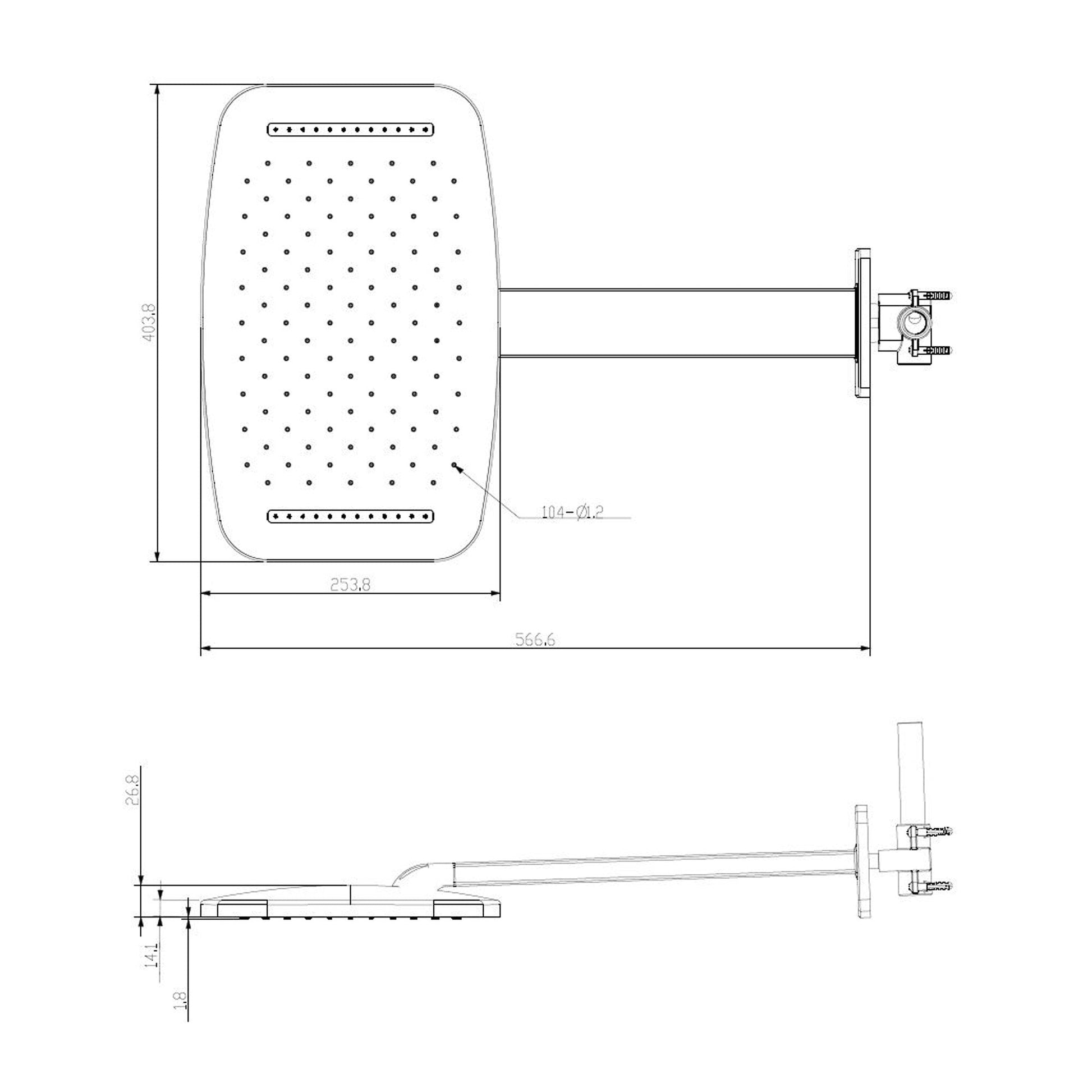 Hoofddouche met watervaldouchearm Wiesbaden 40,4x25,4 cm in chroom