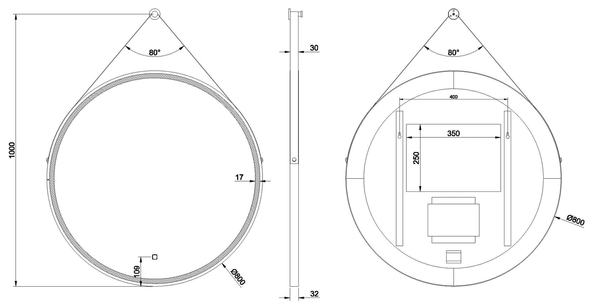 Cinto spiegel rond met band, LED, dimbaar en spiegelverwarming 80 cm mat zwart