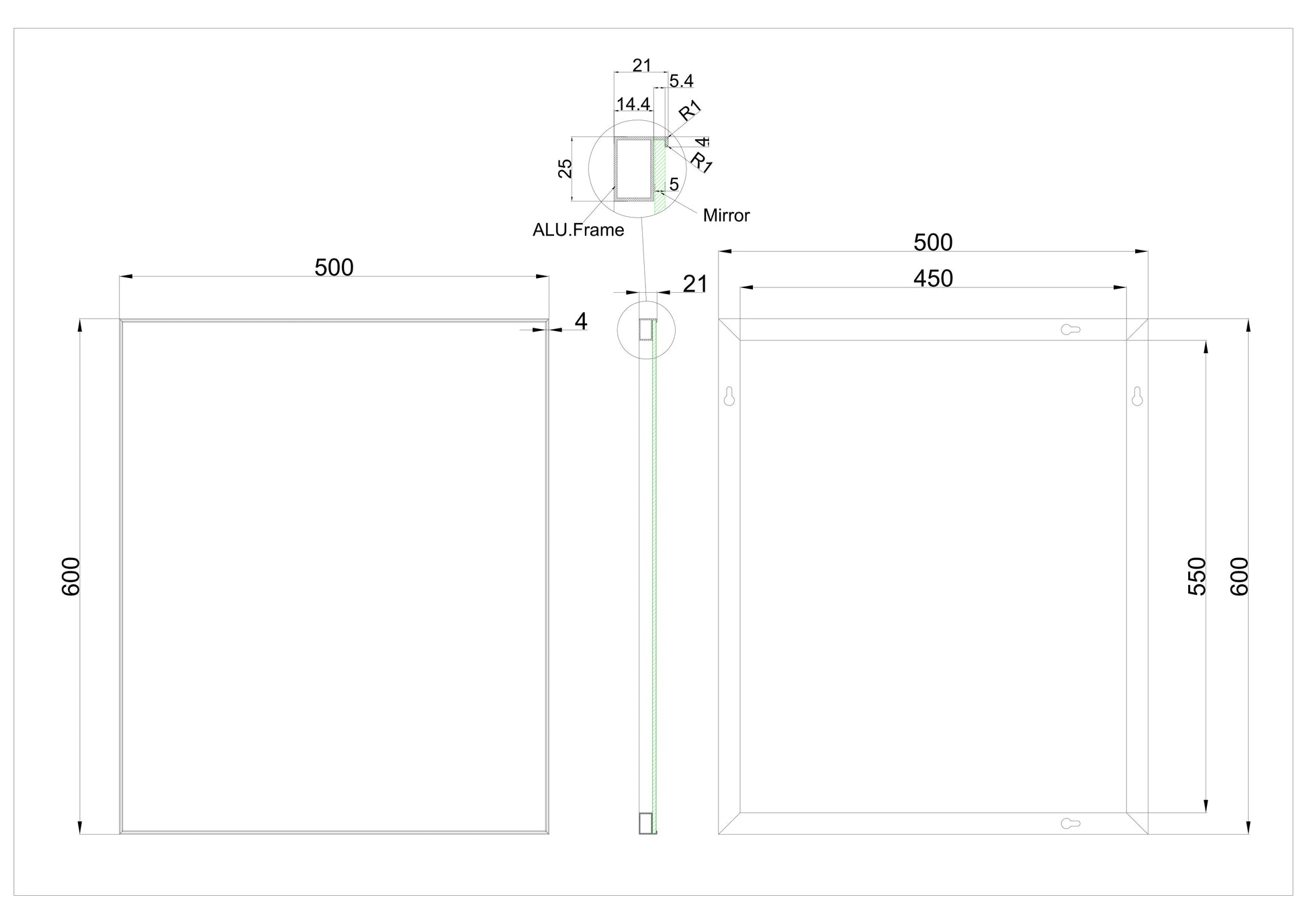 Fina spiegel rechthoek met lijst 50 x 60 x 2.1 cm aluminium