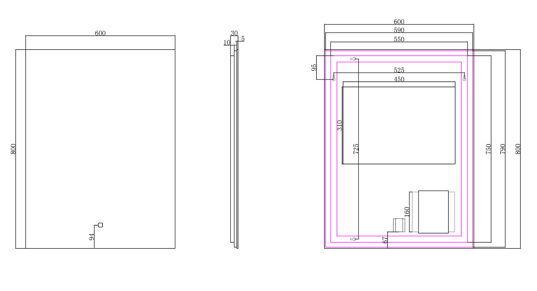 Soul spiegel rechthoek met LED, dimbaar en spiegelverwarming 60 x 80 cm