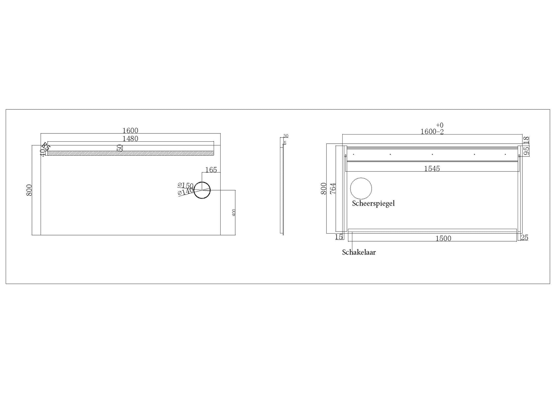 Tigris spiegel rechthoek met LED en scheerspiegel 160 x 80 cm