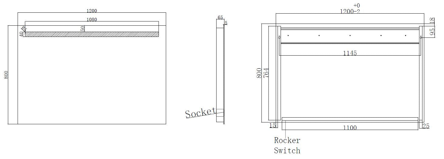 Tigris spiegel rechthoek met LED en stopcontact 120 x 80 cm