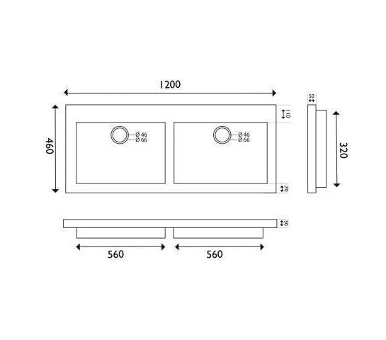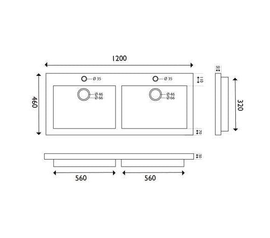 Hardsteen Wastafel Wiesbaden 60, 80, 100, 120 Cm (0, 1 of 2 Kraangaten)