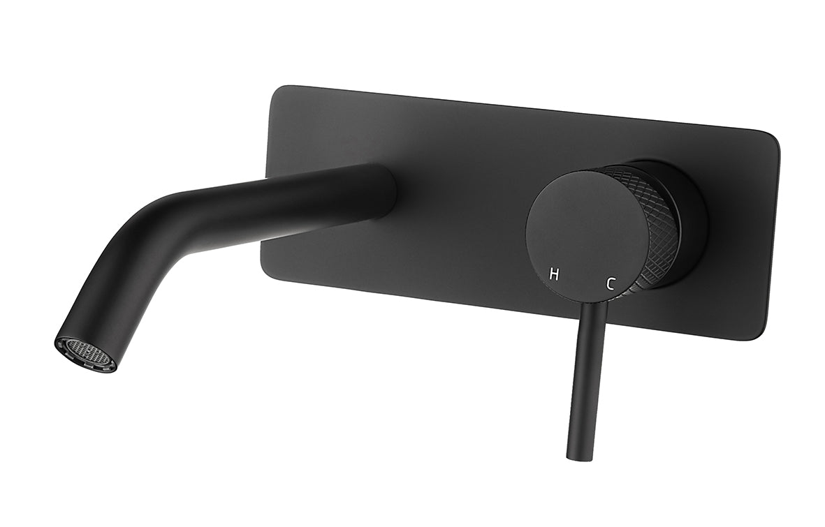 Ribbd Inbouwwastafelkraan Wiesbaden met ééngreeps en afdekplaat in matzwart