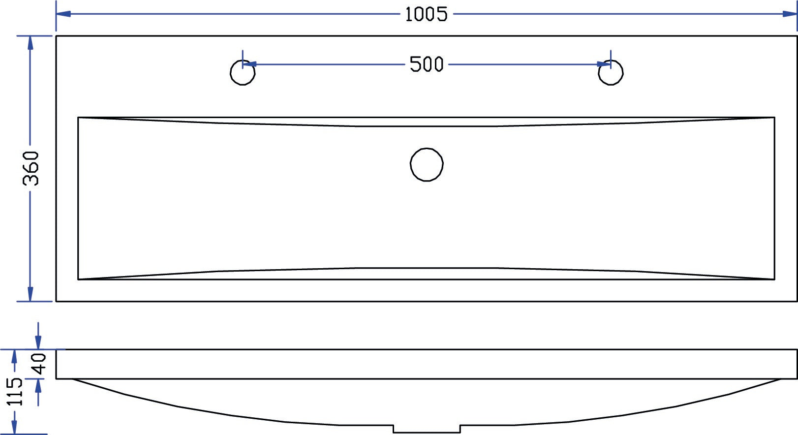 Kunstmarmeren wastafel Wiesbaden 100X36X11,5 Cm in wit (met twee kraangaten)