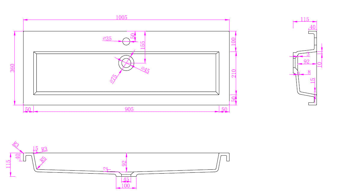 Kunstmarmeren Wastafel Wiesbaden 100x36x11,5 cm Wit (Zonder Kraangat)