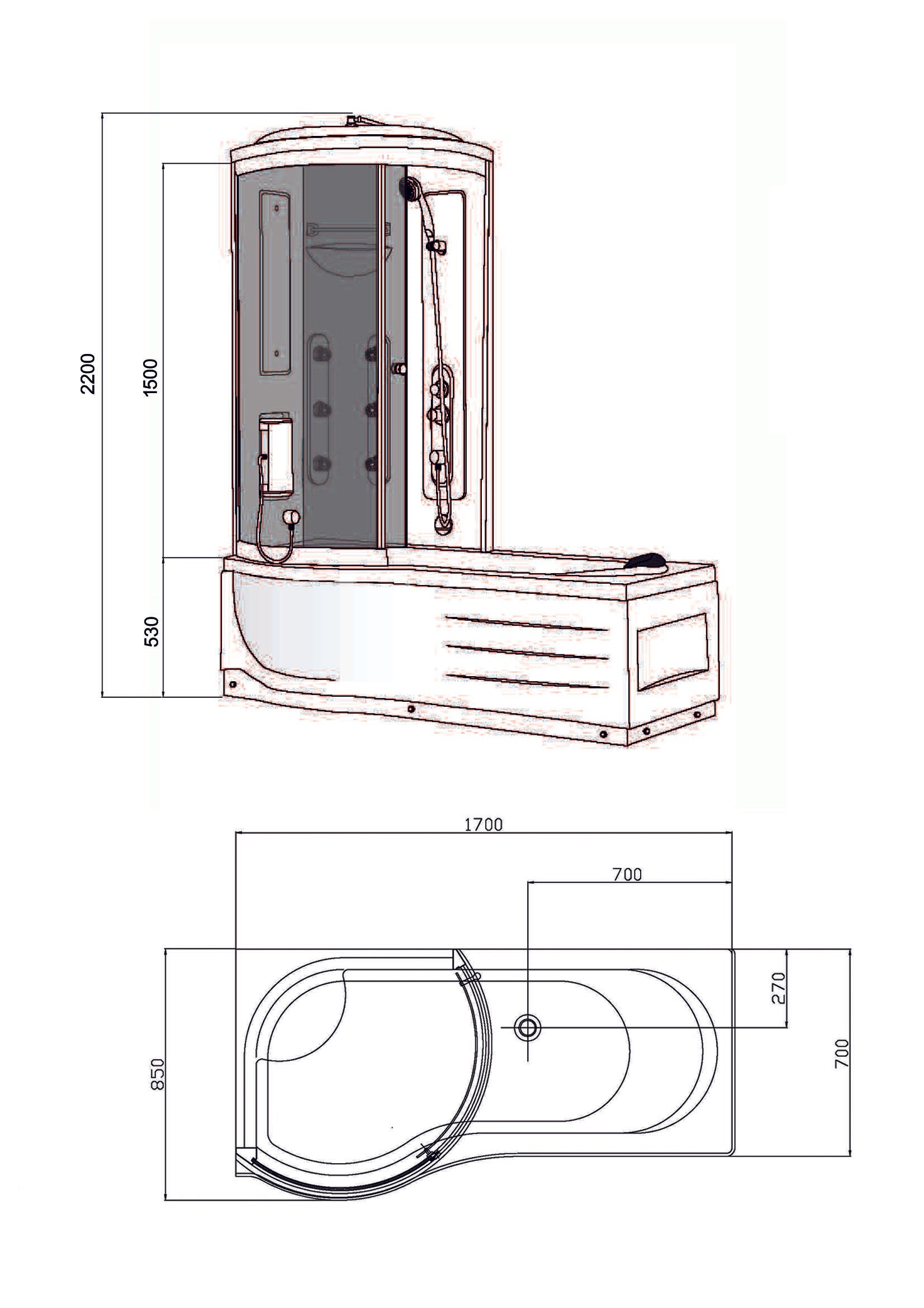 Ritual Complete Bad-douchecombinatie Wiesbaden 170X85X218 Cm in 6Mm (Links)