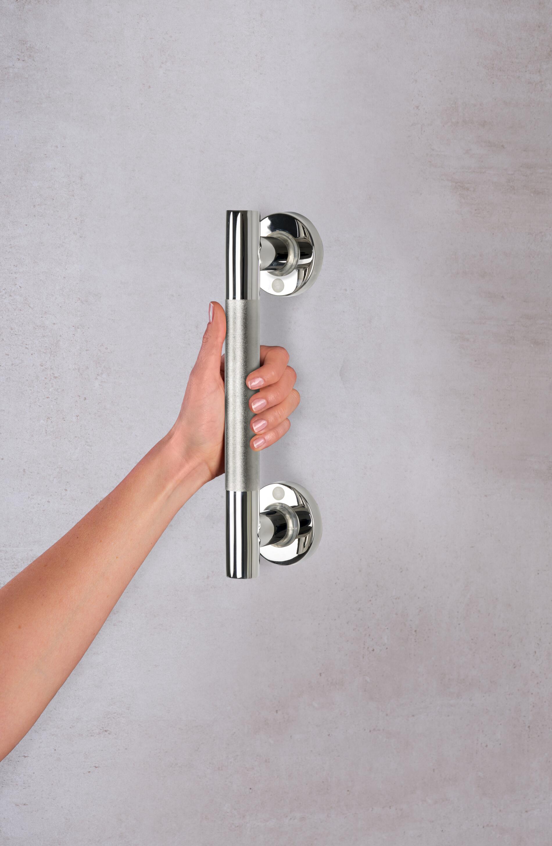 Gebruik deze badgreep voor veilig en prettig gebruik van bad of douche. De badhandgreep is voorzien van een antisliphandgreep voor meer veiligheid en tractie. De badhandgreep is gemaakt van roestvrij staal en heeft een chroomafwerking. Het maximale draagvermogen bedraagt 110 kg.
