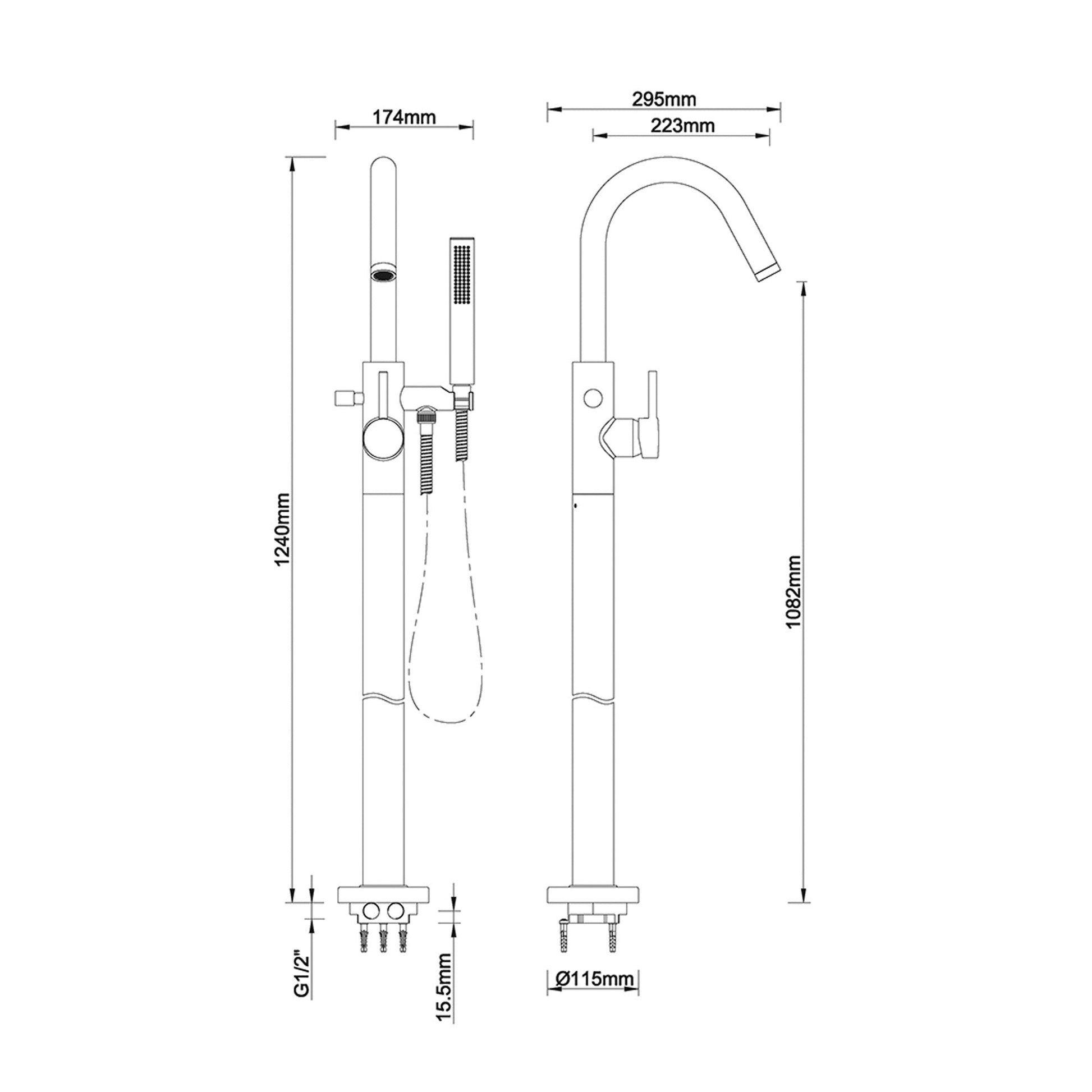 Specificaties Badkraan Wiesbaden Caral Vrijstaand Mengkraan Compleet Gunmetal
