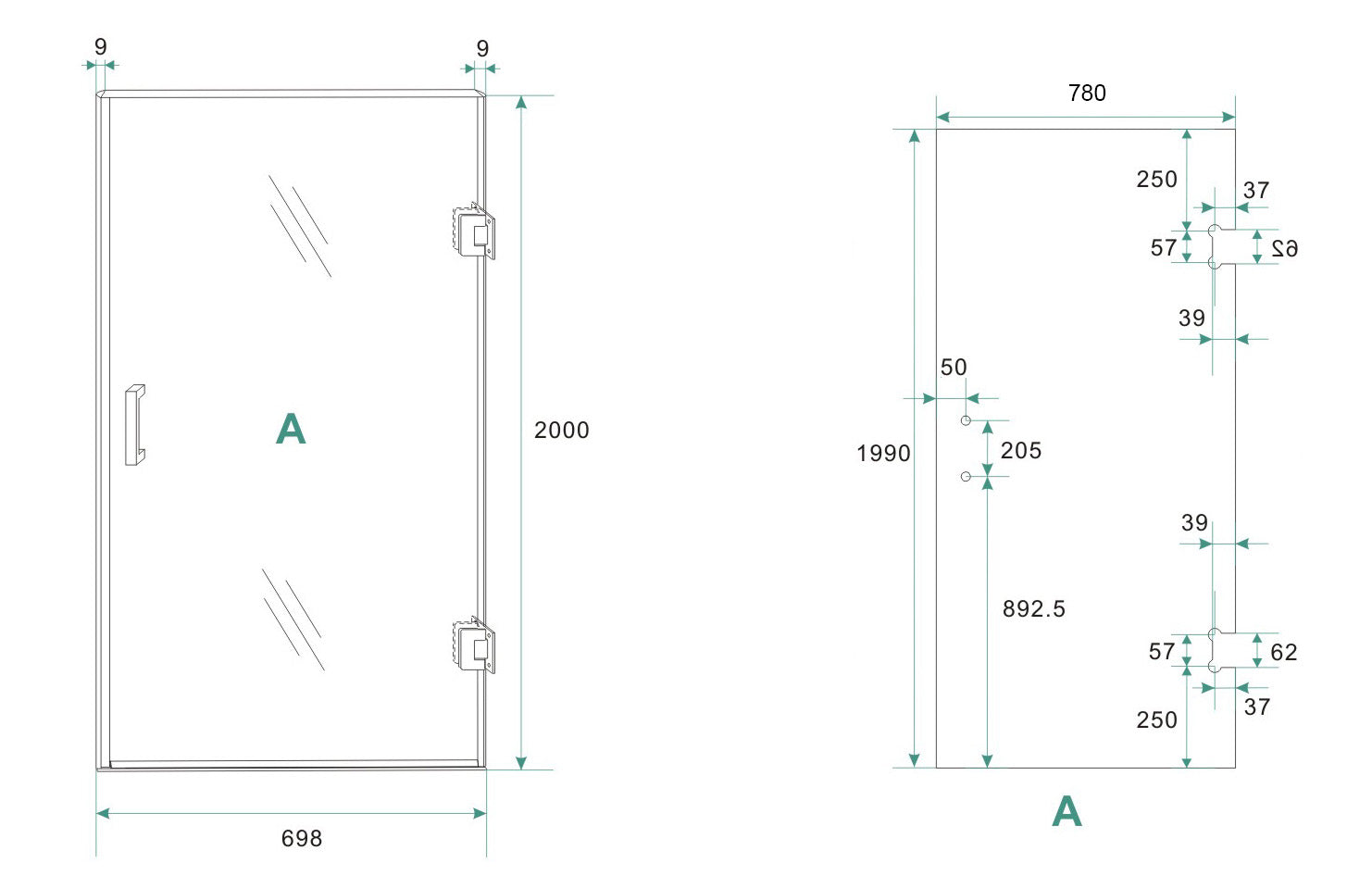 Less glas voor nisdeur rechts 800 x 2000 x 8 mm nano spiegelrook- naar helder glas