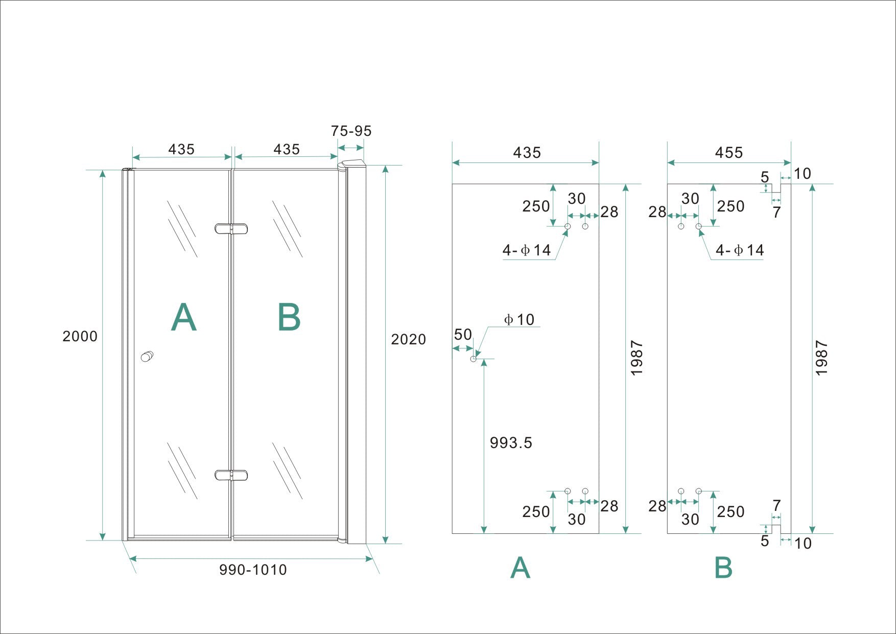 vouwbare nisdeur 1000x2020 rechts 8mm NANO glas
