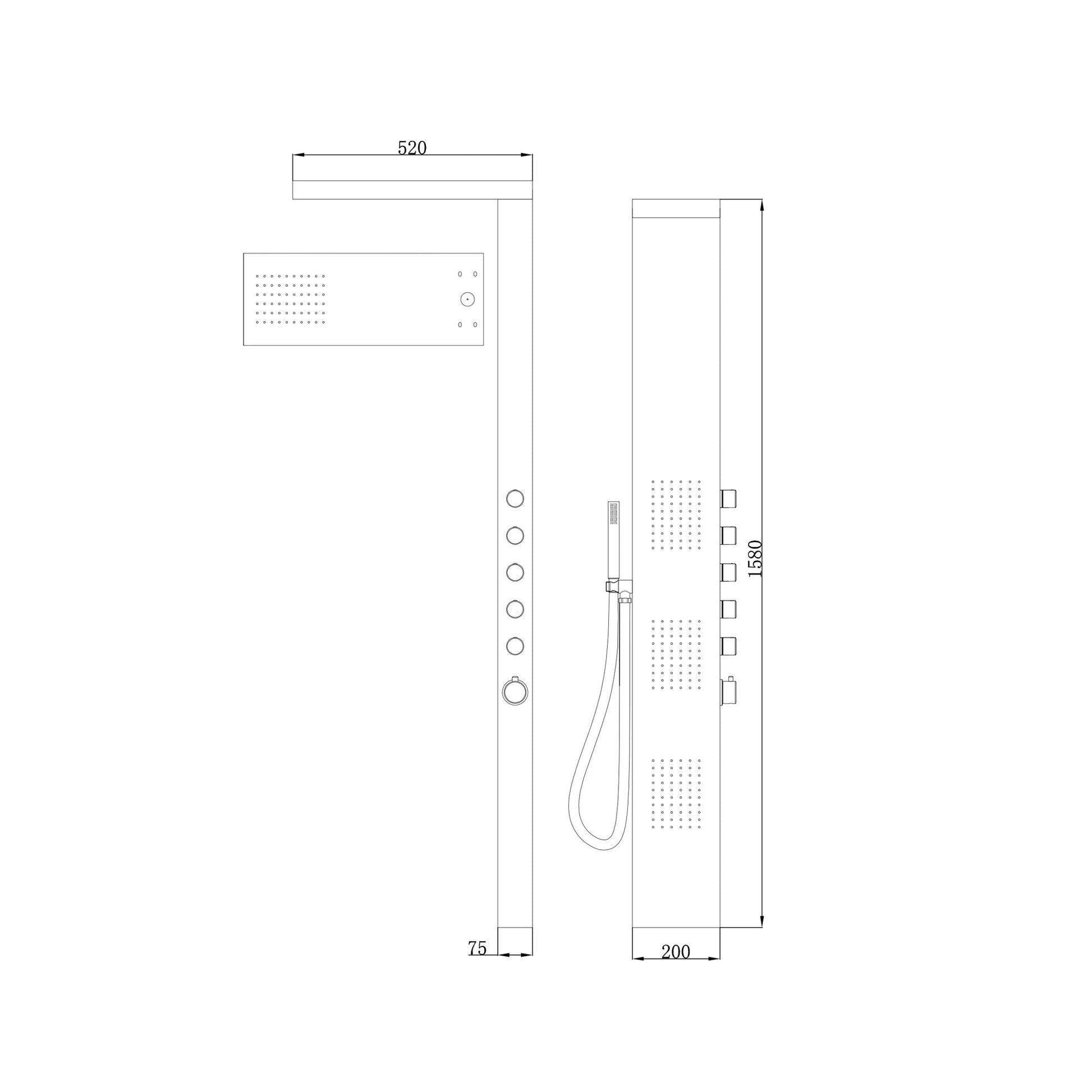 Deze weelderige douchezuil is van het merk Wiesbaden en is zowel mooi als eigentijds. De douchekolom bestaat uit drie verticale douches, een horizontale hoofddouche en een handdouche. Het ontwerp is eigentijds en elegant en verbetert de esthetiek van uw badkamer. De verschillende wateropbrengsten die onafhankelijk van elkaar kunnen worden geactiveerd, zorgen ervoor dat u optimaal van deze douchezuil kunt genieten. De afmetingen zijn 158 x 20 cm en de douchekolom is voorzien van vijf onafhankelijk bedienbare stopkranen.