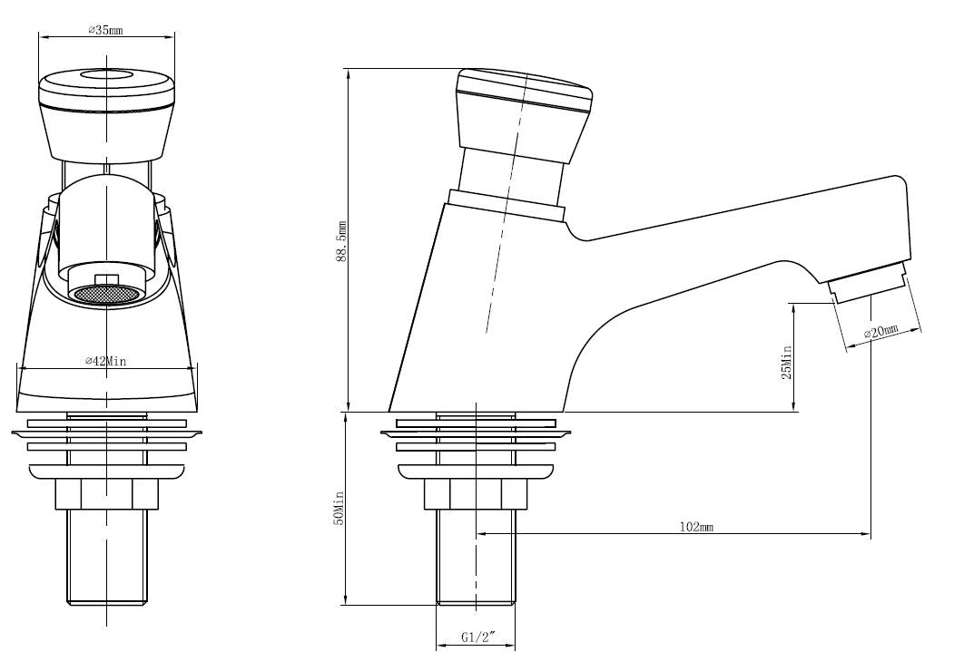 Autostop Zelfsluitende Fonteinkraan Wiesbaden 1/2 in Chroom