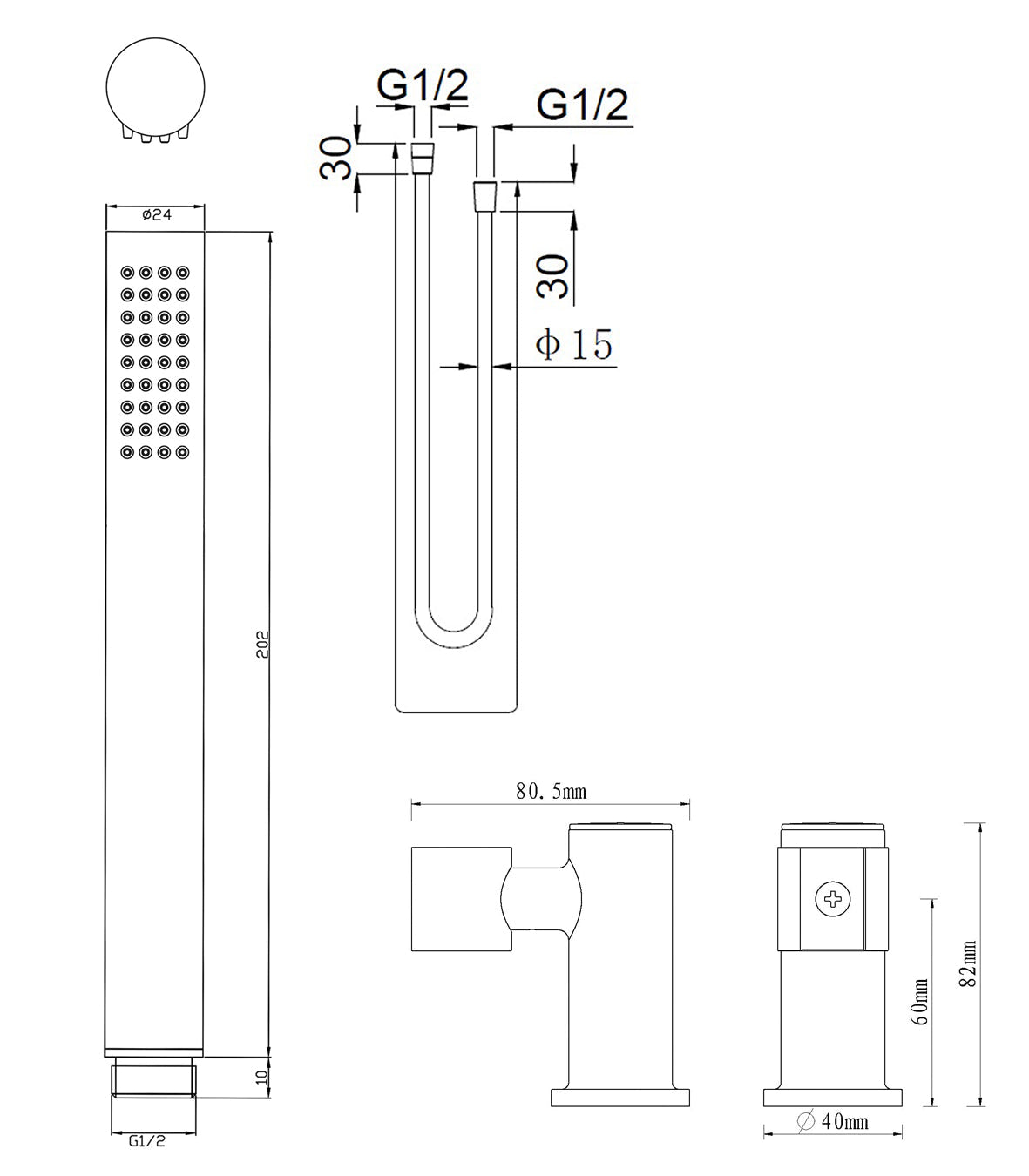 UniMatch handdoucheset met staafhanddouche 1 stand, doucheslang en wandhouder kantelbaar geborsteld messing
