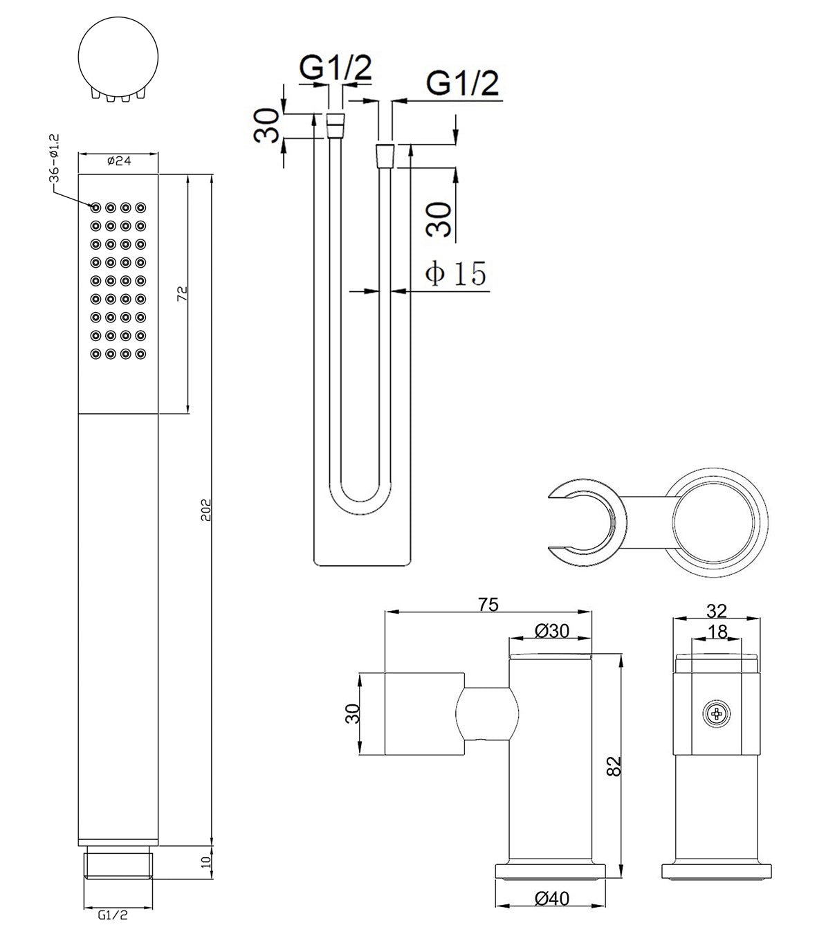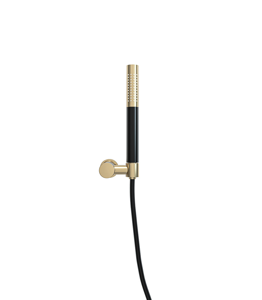 UniMatch handdoucheset met staafhanddouche 1 stand, doucheslang en wandhouder kantelbaar geborsteld messing/mat zwart