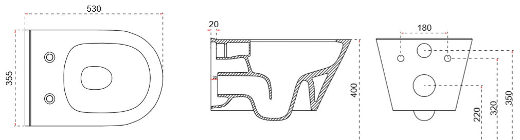 Luxe Randloos Wandtoilet Wiesbaden 53 Cm met Ingebouwde Bidetkraan Koud in Mat Zwart