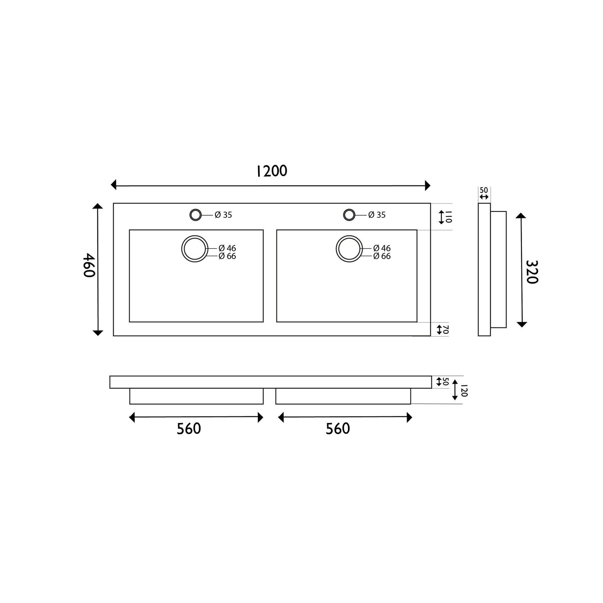 Dubbelkraangat Hardsteen Wastafel Wiesbaden 120X46X5 Cm