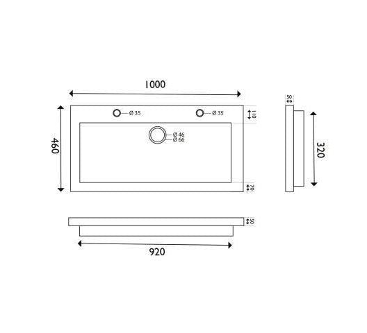 • - Wastafel - Wiesbaden - Bluestone - 0,1 of 2 kraangaten - Afmetingen: 46 cm x 5 cm (L x B x H)