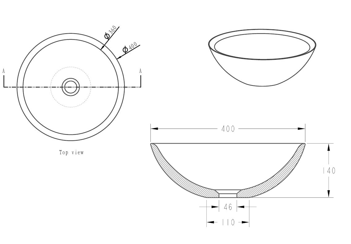 Raw waskom rond 40x14 cm hardsteen gezoet