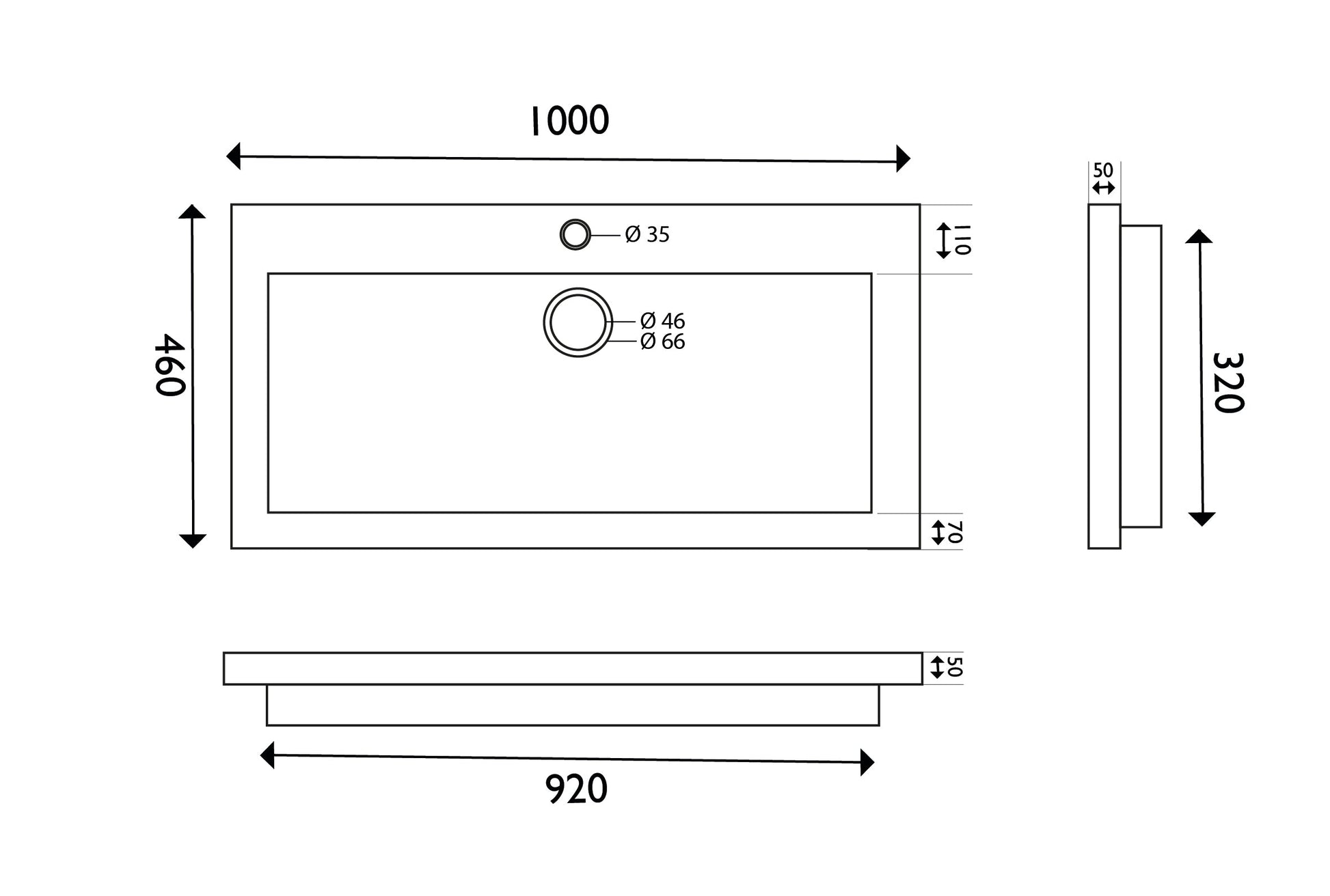 Raw wastafel enkel met 1 kraangat 100x46x5 cm hardsteen gezoet