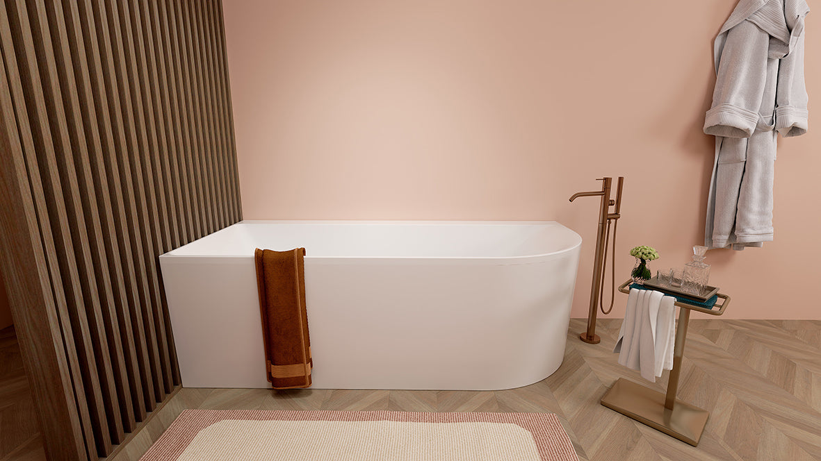 • Hoekbad gelegen aan de linkerkant; kleur: mat wit.