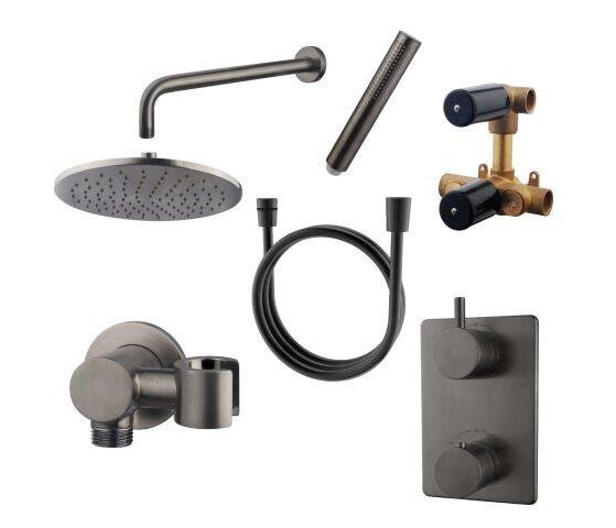 Caral Inbouw Regendoucheset Wiesbaden met Rechthoekige Wanduitlaat in Gunmetal PVD Coating (Inclusief Inbouwonderdelen)