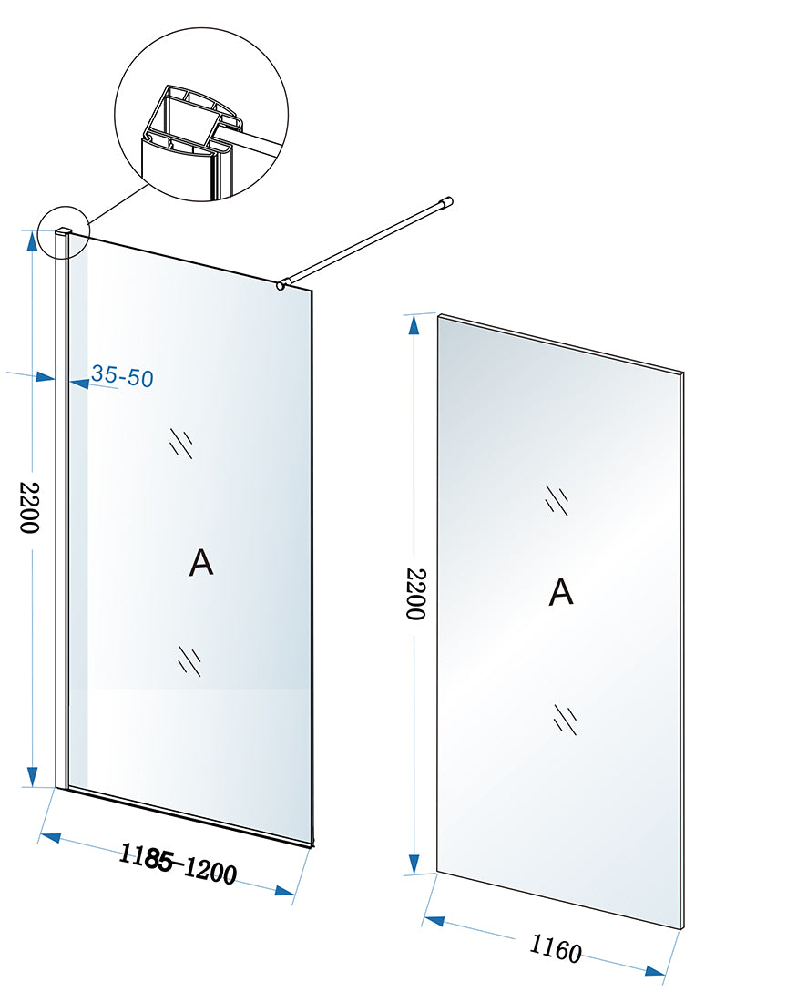 Eco inloopdouche 1200 x 2200 x 8 mm nano helder glas/chroom