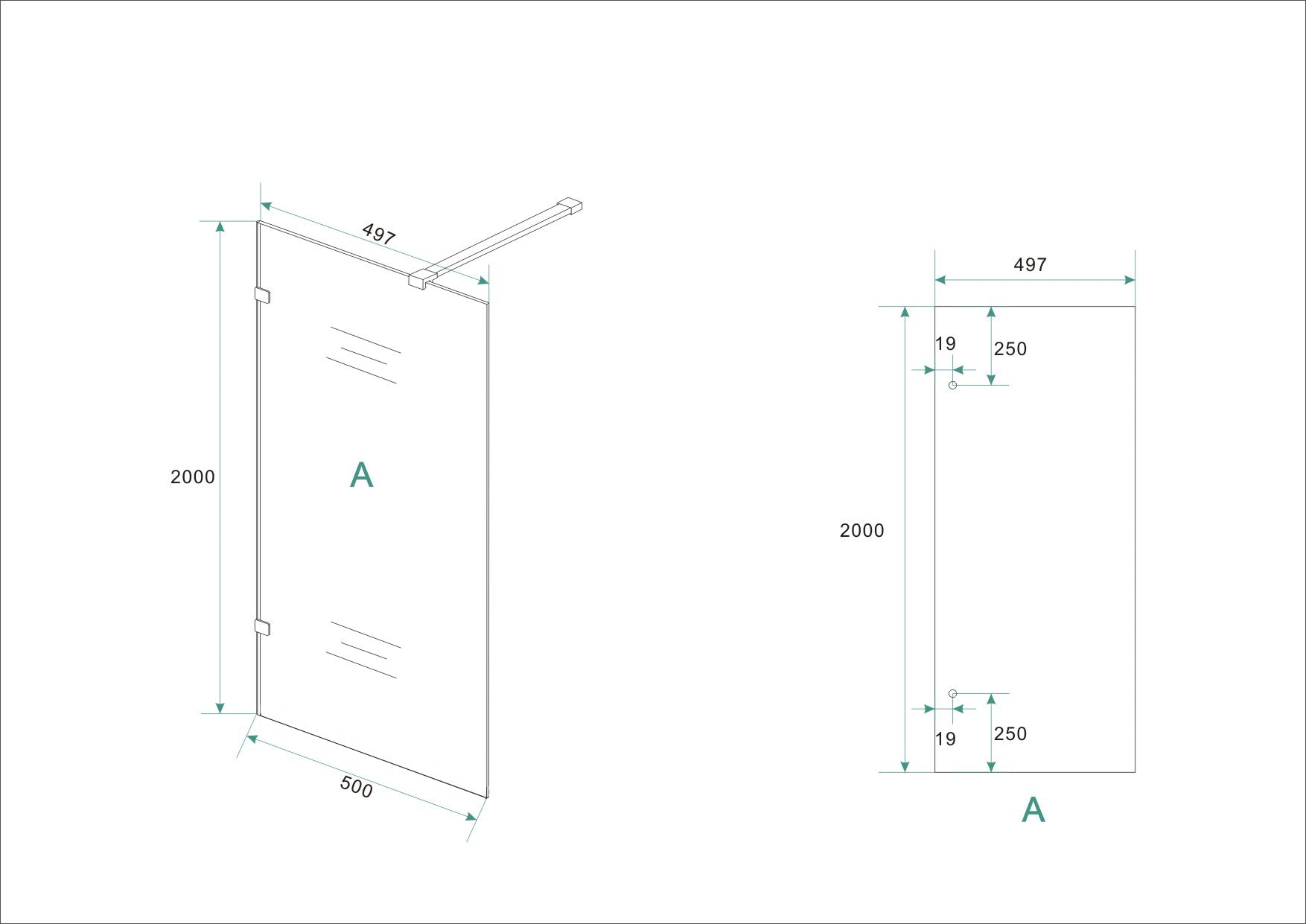 Profielloze inloopdouche 500x2000 8mm NANO glas