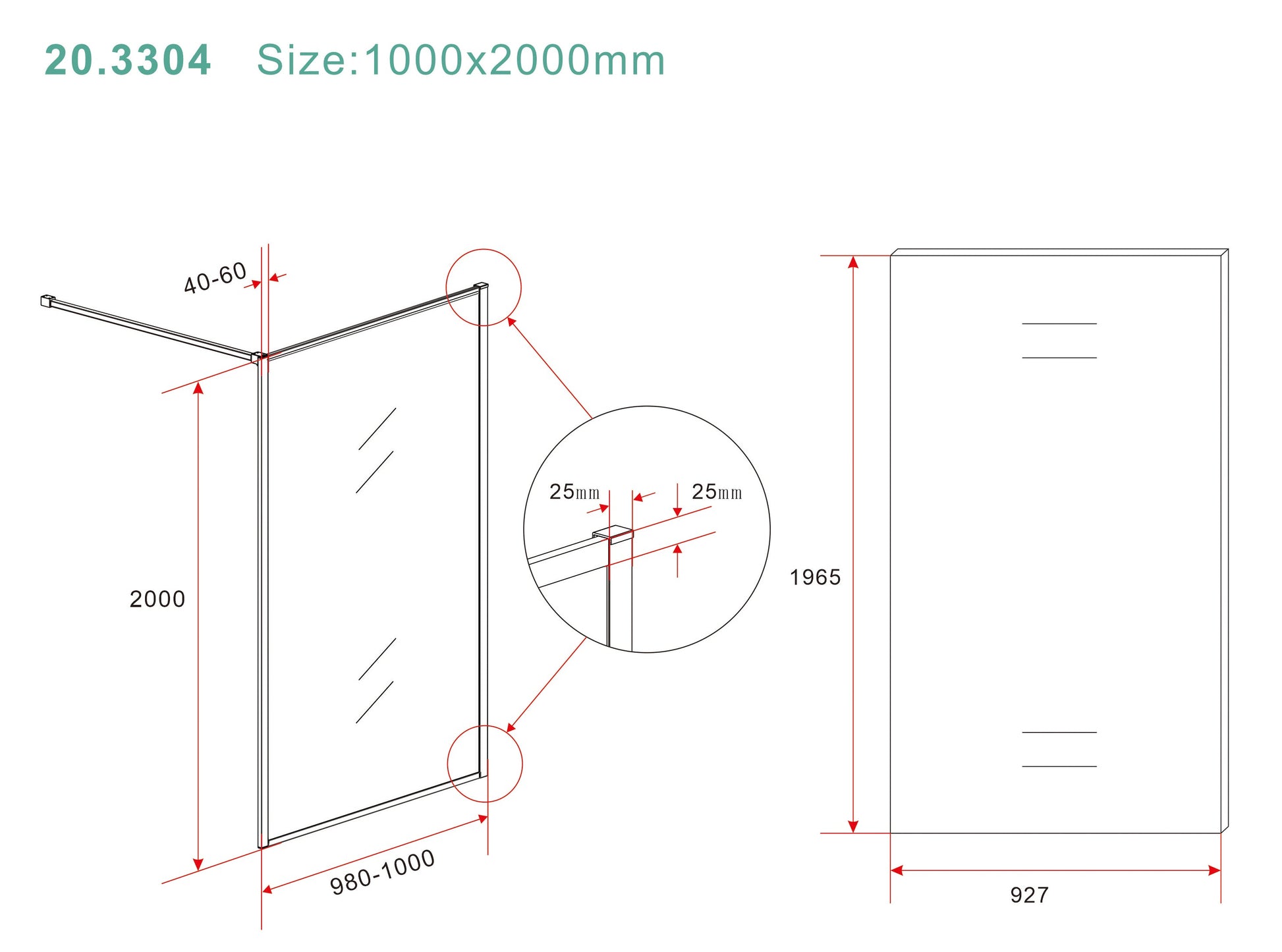 Square inloopdouche 1000 x 2000 x 8 mm nano helder glas/geborsteld brons koper