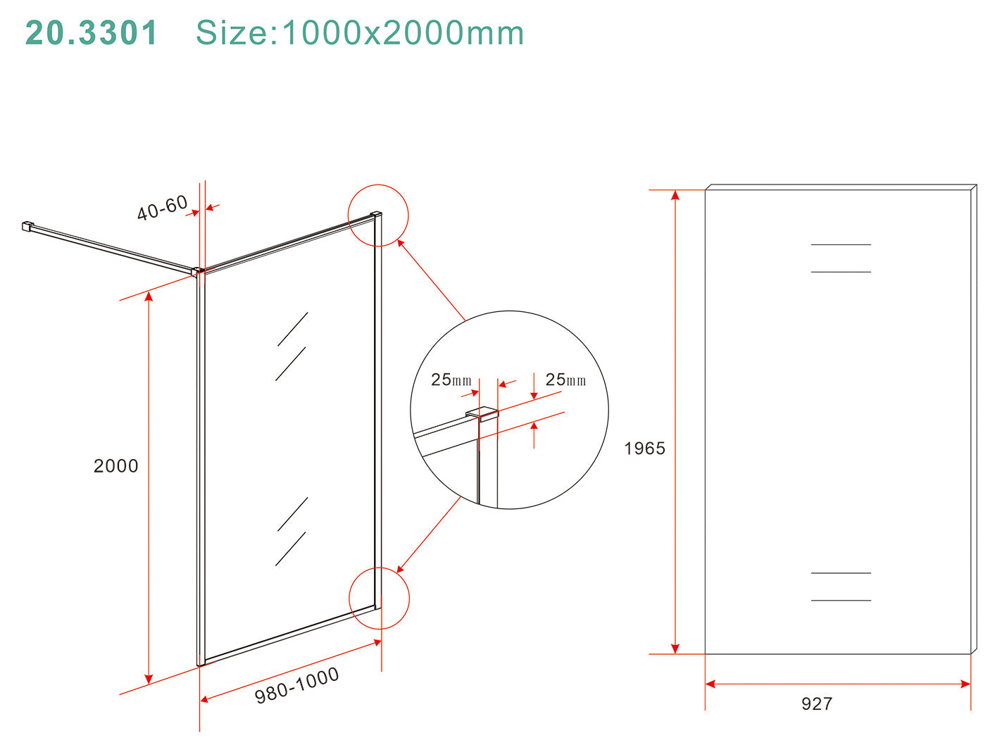 Square inloopdouche 1000 x 2000 x 8 mm nano helder glas/geborsteld messing