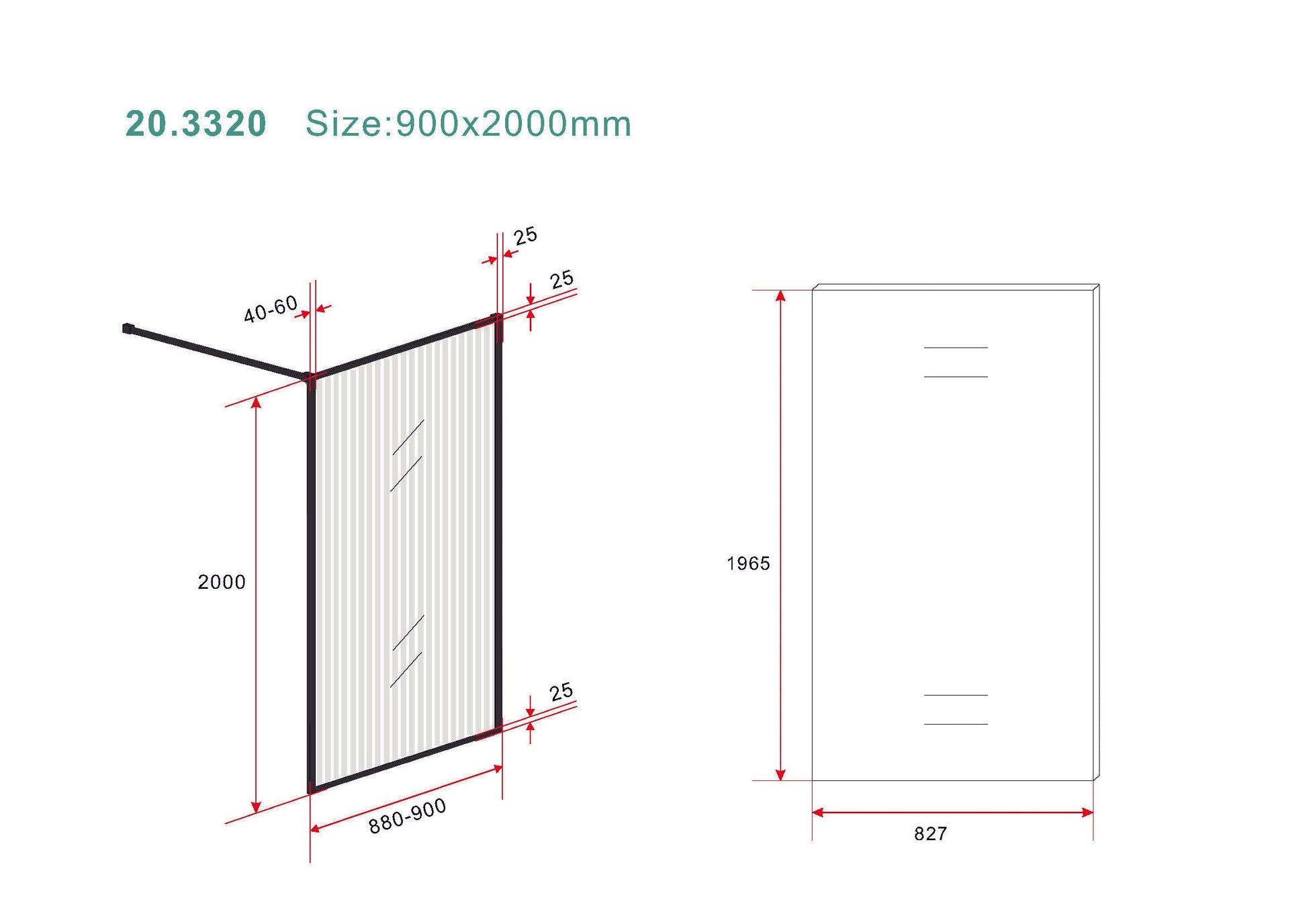 Square inloopdouche 900 x 2000 x 8 mm nano geribbeld helder glas/mat zwart